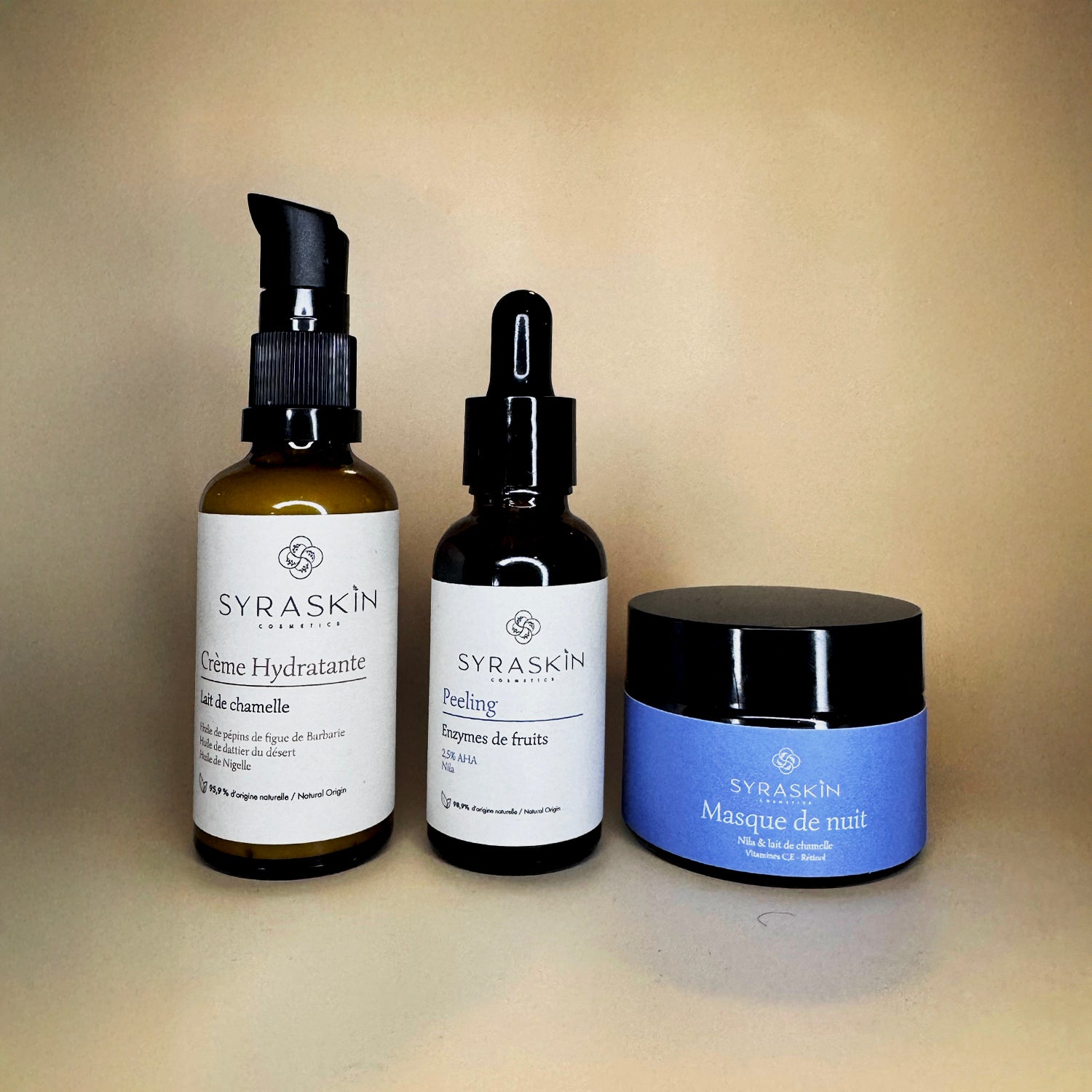 Découvrez le pack idéal pour révéler tout l’éclat de votre peau. Le Booster d’éclat associe le Peeling, le Masque de Nuit et la Crème Hydratante SyraSkin pour exfolier, nourrir et régénérer votre peau en profondeur. En choisissant ce pack, vous bénéficiez d’une routine complète à prix avantageux pour une peau visiblement plus lumineuse et revitalisée.